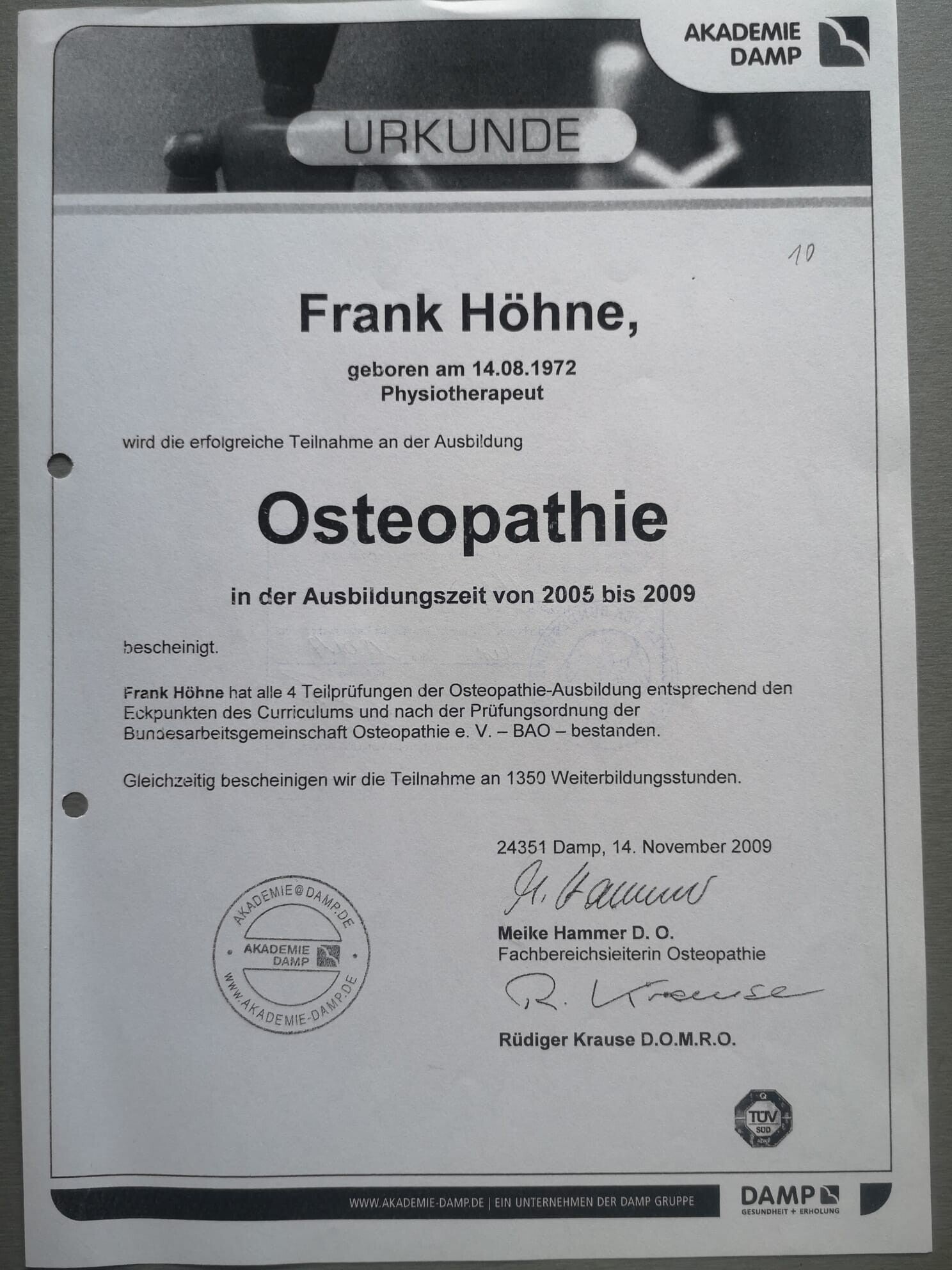2023 — Abschluss des 5 Jährigen Studiums zum Dipl. Osteopathen an der Internationalen